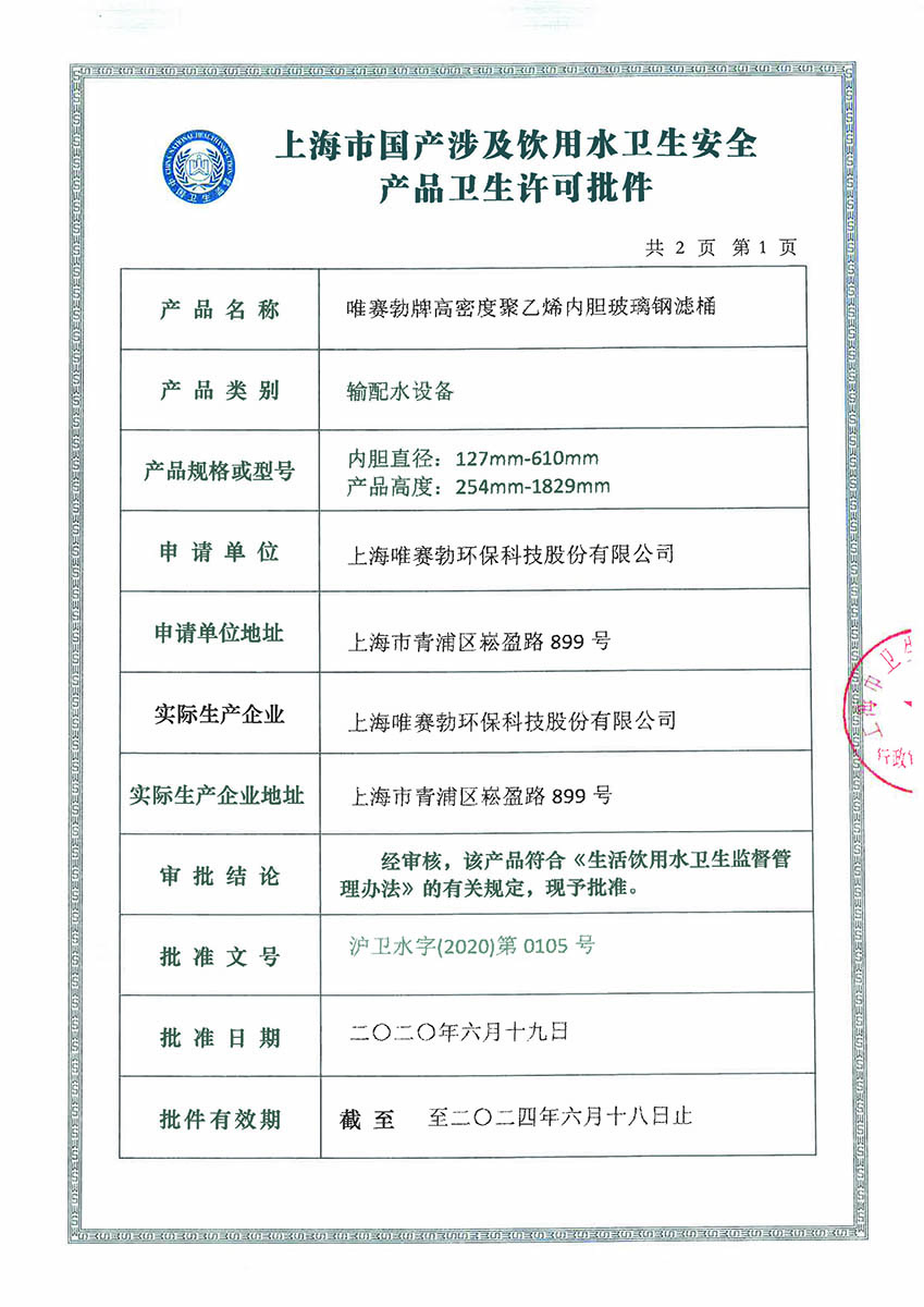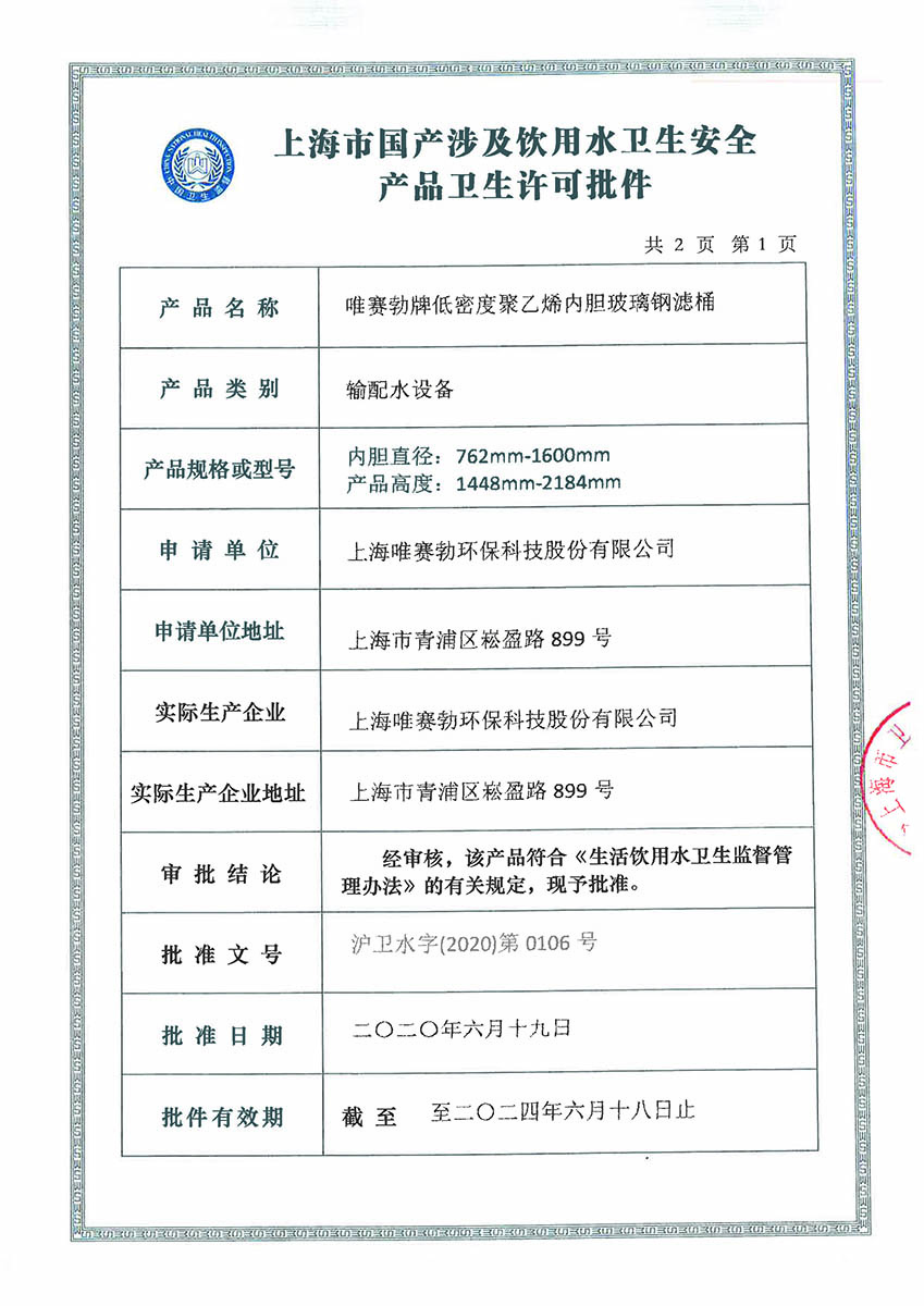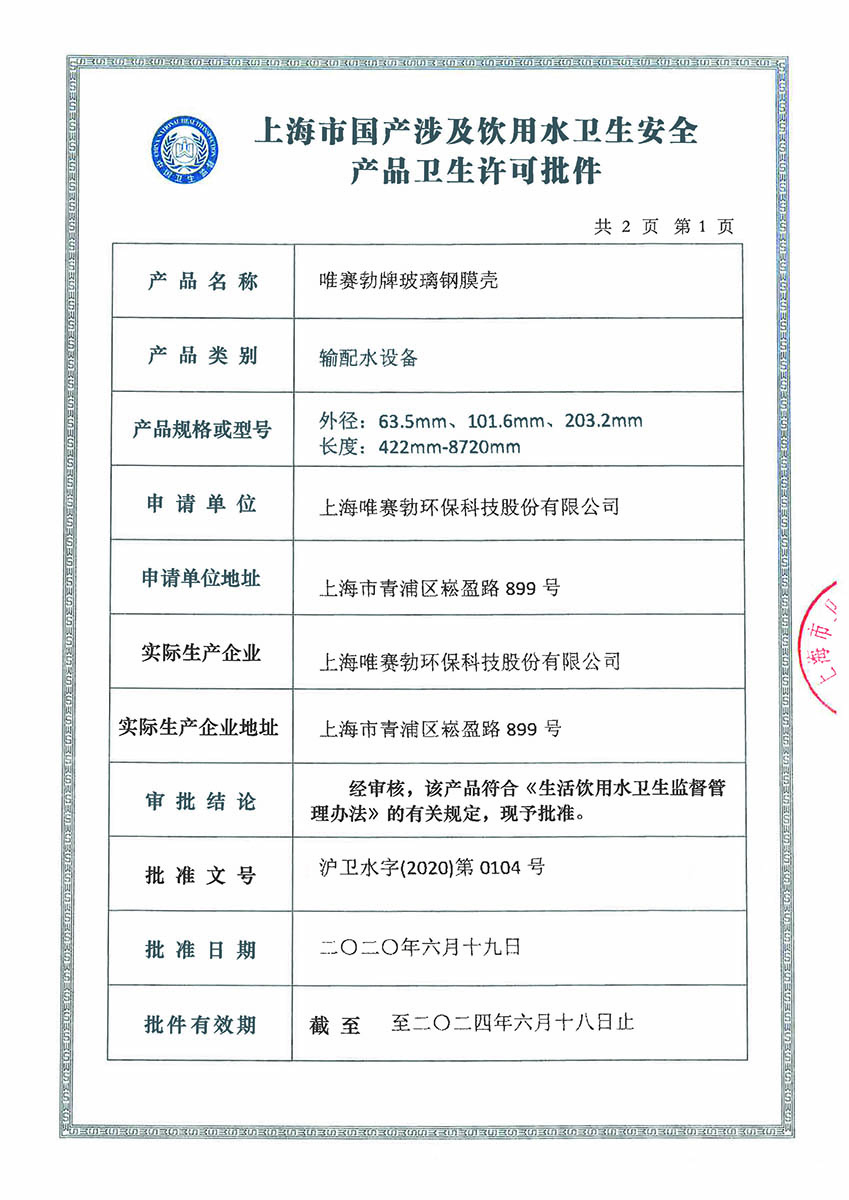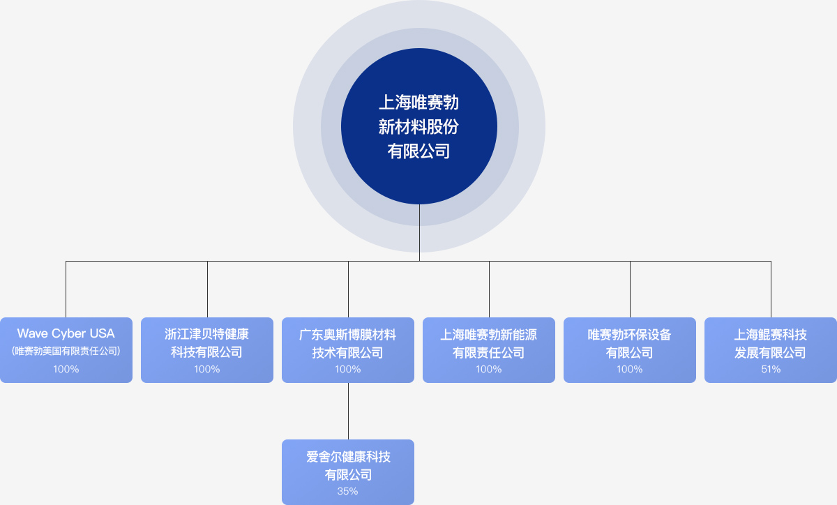 - Wave Cyber USA(唯赛勃美国有限责任公司):从事水处理设备的制造和销售,主要产品为复合材料压力罐,是公司在美国的生产基地。
